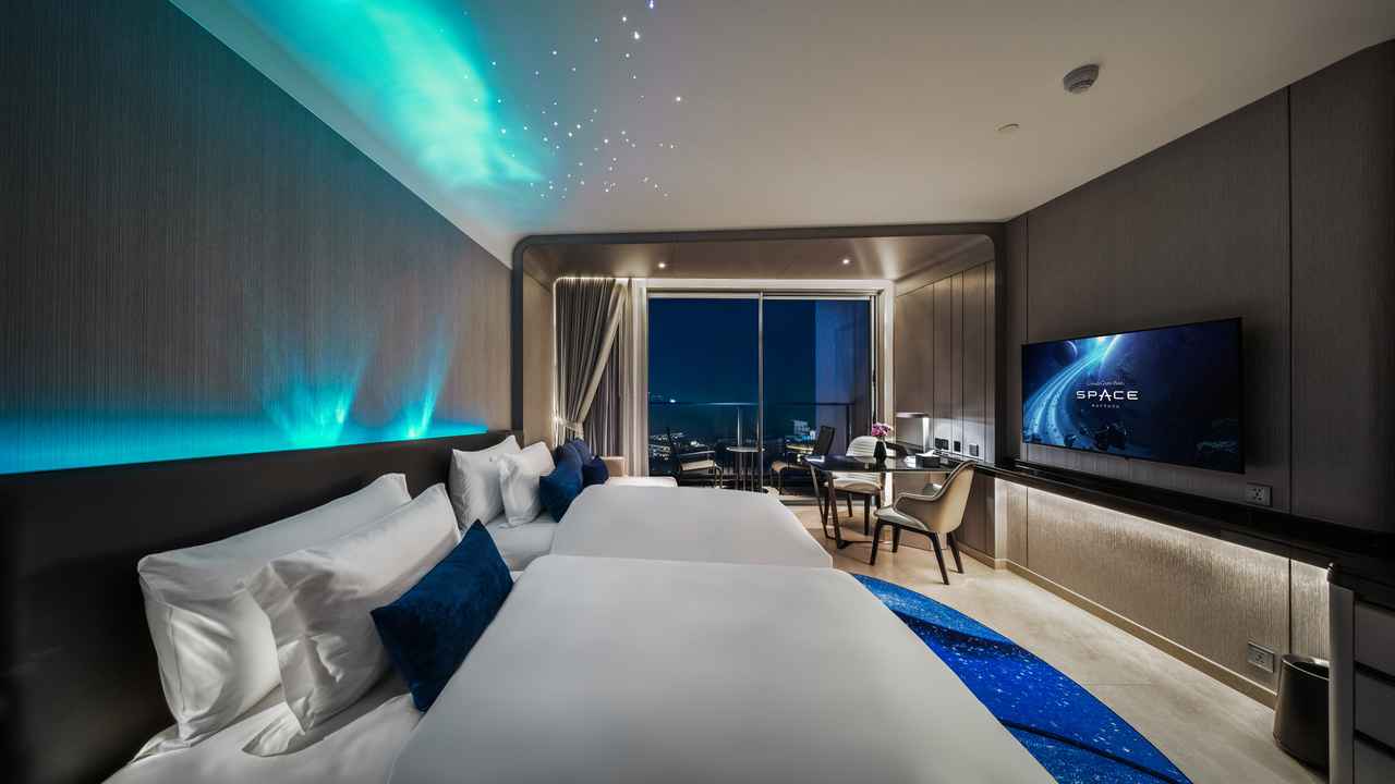 파타야호텔 프로모션- 그랑데 센터포인트 스페이스 파타야 2025년 12월 15일~ 2026년 12월23일. 1박당 20만원대 초반부터 시작, 우주선을 테마로 한 가족여행 컨셉의 고급호텔
