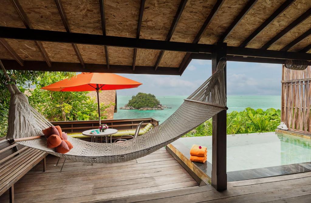 세렌디피티 비치 리조트 코리페는 선라이즈 비치 끝의 높은 곳에 자리하여 객실 및 레스토랑에서 랑카위 섬까지 보이는 파노라마 오션뷰를 제공합니다. 워킹 스트리트에서 도보 약 15~20분 거리로 약간 떨어져 있어 북적거리지 않고 조용하게 휴식할 수 있는 환경입니다. 자연 친화적인 목재 소재의 방갈로 형태이며, 일부 객실은 전용 수영장을 갖추고 있어 커플 여행객에게 인기가 높습니다.
