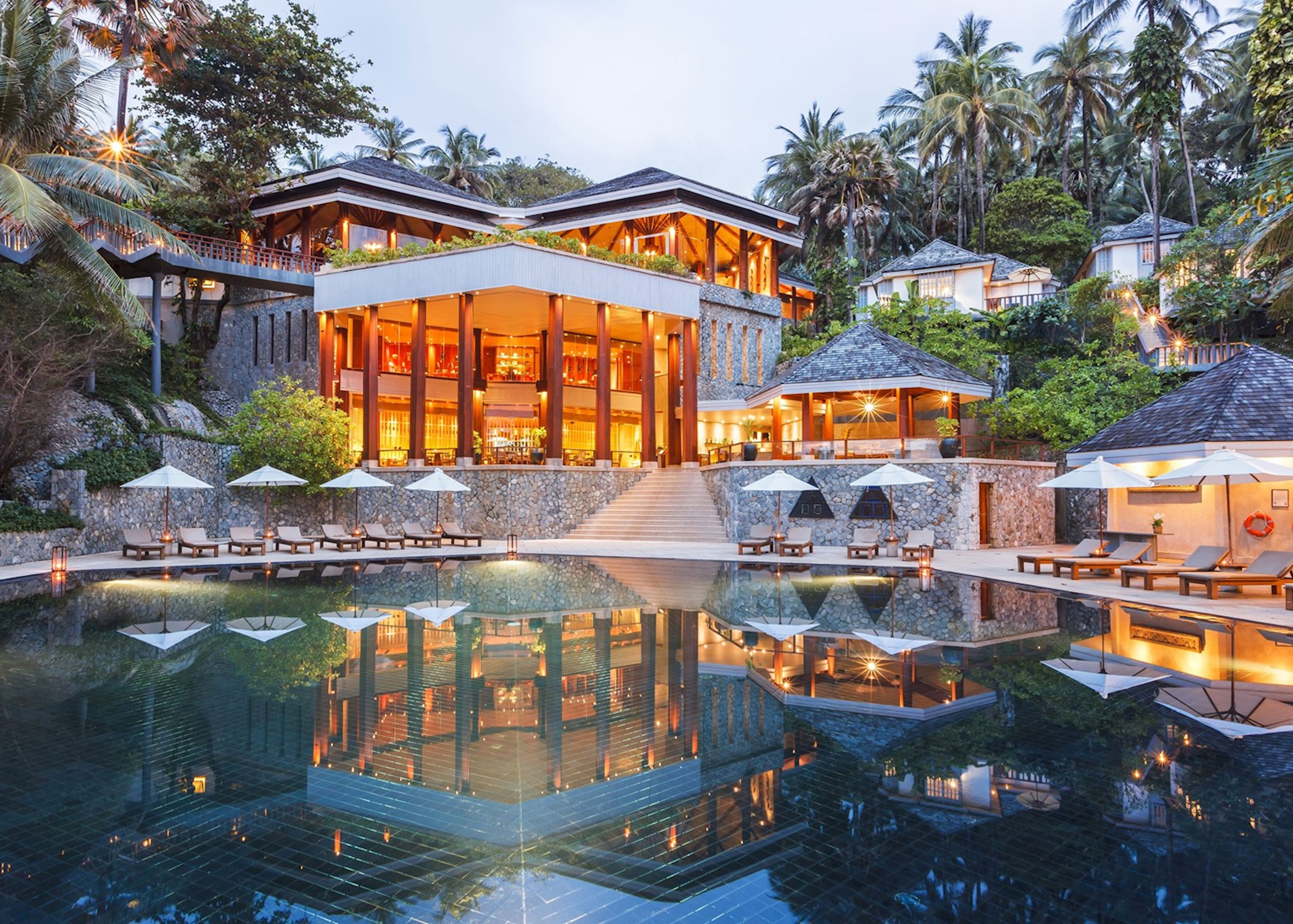 푸켓에서 가장 아름다운 비치라고 불리우는 더 수린푸켓리조트의 판시비치는 수심이 얕고, 아름다워 신혼여행,커플여행으로 많이 추천됩니다. 리조트내에는 스파점, 휘트니스, 라이브러리, 비즈니스센터, 미팅룸,연회장등이 있습니다. 자연친화적인 리조트로 평범함 가운데 비범함이 숨겨있는 리조트입니다. 푸켓공항에서 차로 40분, 푸켓타운에서 차로 40분, 파통에서 차로 25분정도 거리에 위치합니다. 리조트가 위치한 수린비치 지역에는 적당히 상가가 발달해 편의점, 로컬음식점등을 이용하기 편리합니다. 건기에는 비치에 각종 다양한 음식점,음료점, 마사지샵이 있어 편리합니다.