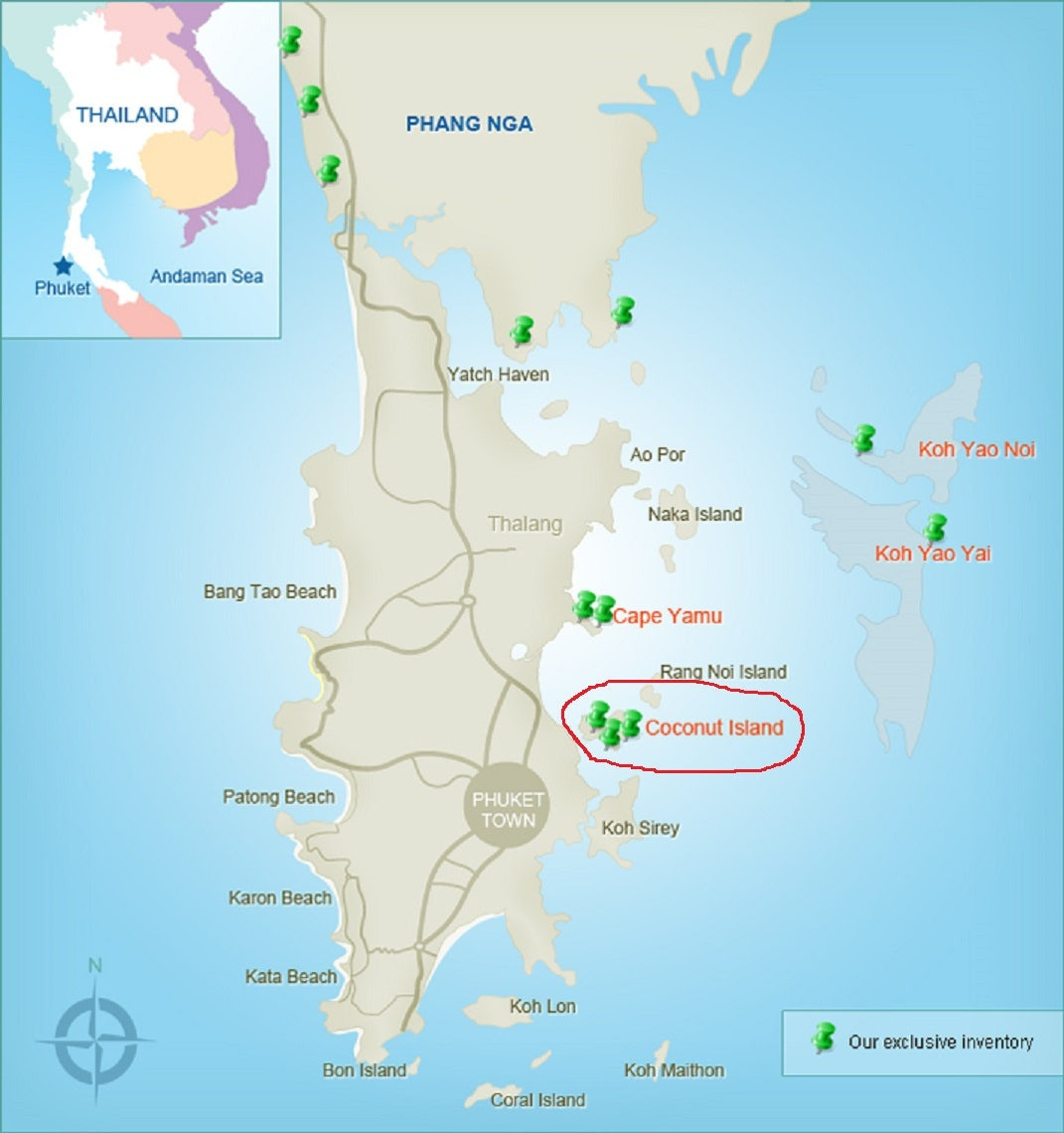 코코넛 아일랜드는 말이 섬이지 사실상 육지나 다를 바 없습니다. 푸켓 램힌 선착장에서 롱테일보트로 2~3분이면 코코넛섬 선착장으로 이동할 수 있기 때문에 배 타고 가는 시간이 얼마 안 됩니다. 코코넛 섬 리조트들은 램힌 선착장에서 보통 리조트 앞 선착장까지 배를 타고 이동합니다. 비바람이 불고, 태풍이 칠 때에는 리조트에서 푸켓섬과 제일 가까운 선착장으로 차량을 이용해 이동한 후 배를 타고 푸켓섬으로 이동합니다. 따라서 날씨의 영향을 전혀 받지 않는 천혜의 지역입니다.